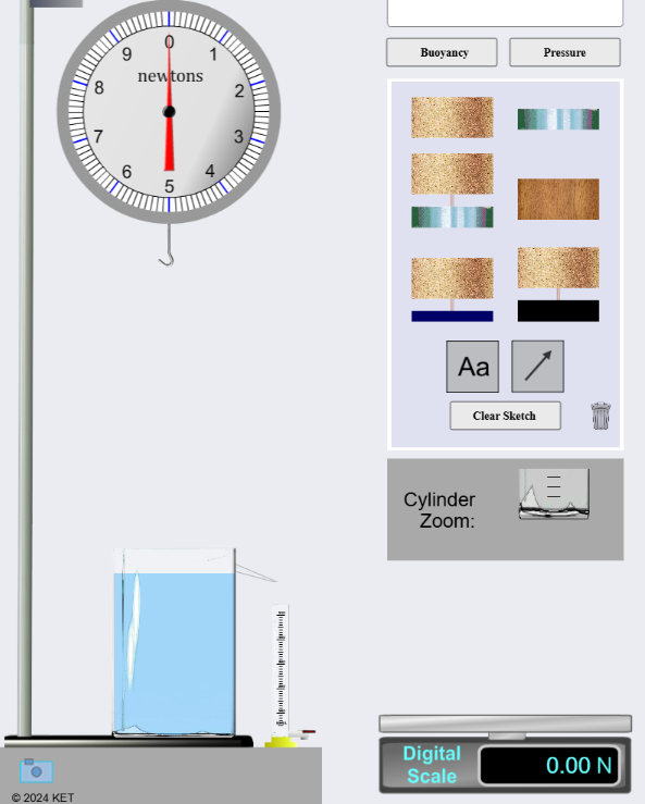 Archimedes’ Principle in effect. Investigate buoyant forces on fully and partially submerged bodies in water.