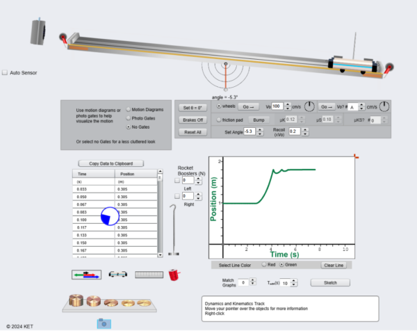 The Dynamics track is the real workhorse of our labs and all of its bells and whistles make it a robust tool for exploration. Explore kinematics, friction, forces, work, energy, and more.