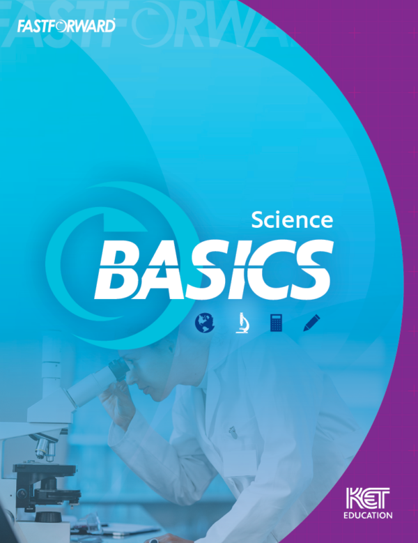 FastForward Science Basics provides a solid introduction to life science, earth and space science, chemistry, and physics – from cells to the Solar System, and from elements to electricity. This workbook includes a pretest and a posttest, plus real-life examples of how we use science every day, and practice to help you develop skills you will need to do well on tests and on the job.