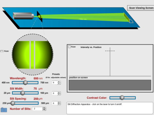 - Investigate how the width of a slit and the wavelength of the light determine the diffraction.